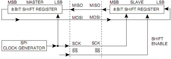 El SPI es una interfase de transferencia de datos de alta velocidad entre uC u otros dispositivos periféricos. Este tipo de interfase que aunque es más rápida que la interfase I²C utiliza mayor cantidad de pines que esta. Su principal desventaja es que no cuenta con señal de asentimiento, es decir, que el “Maestro” podría estar enviando información sin que estuviese conectado algún “Esclavo” y el “Maestro” no tendría conocimiento de esto.