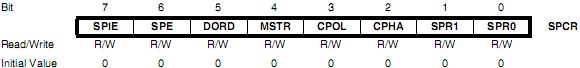 MSTR: Bit encargado de la selección como maestro o como esclavo, cuando es colocado a uno se comporta como maestro, caso contrario como esclavo.