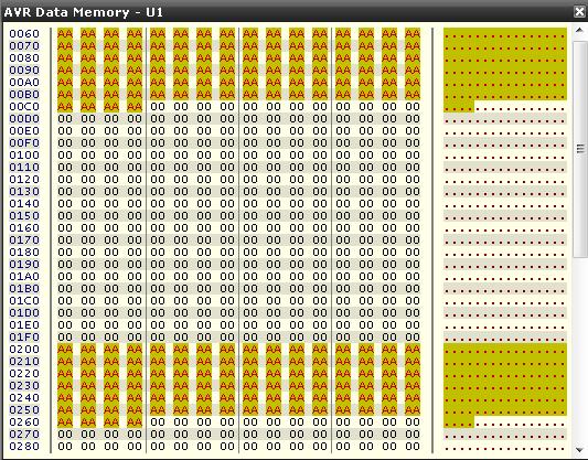 • Debug –> AVR Data Memory