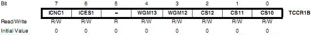 ICNC1 es el habilitador de cancelación de ruido de captura de entrada y ICES1 es el selector de captura de entrada, con cero habilitamos la captura por flanco de bajada y con uno por flanco de subida.
