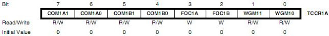 COM1A1, COM1A0, COM1B1, COM1B0 controlan como va ha ser generada la salida de onda.