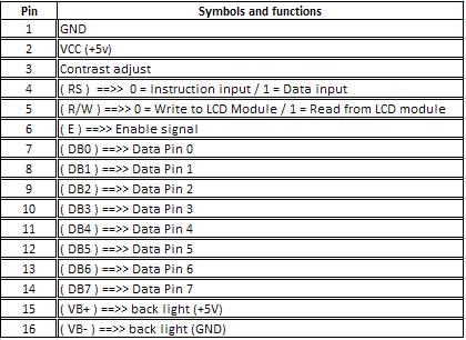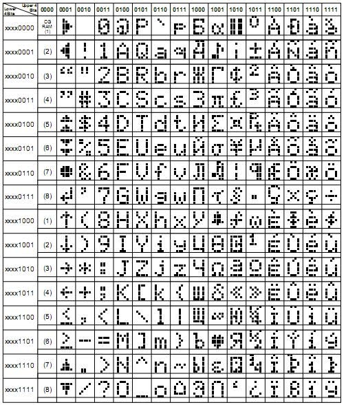 Para empezar a graficar lo que tenemos que hacer es un mapa de píxeles de 7×5 y obtener valor binario de cada fila, el valor de bit es 1 si píxel es el valor que brilla intensamente y bit es 0 si pixel está apagado. El final de 7 valores se cargan en el CGRAM uno por uno. Como he dicho, hay 8 líneas por cada patrón, fila, de manera última se suele dejar en blanco (0x00) para el cursor.